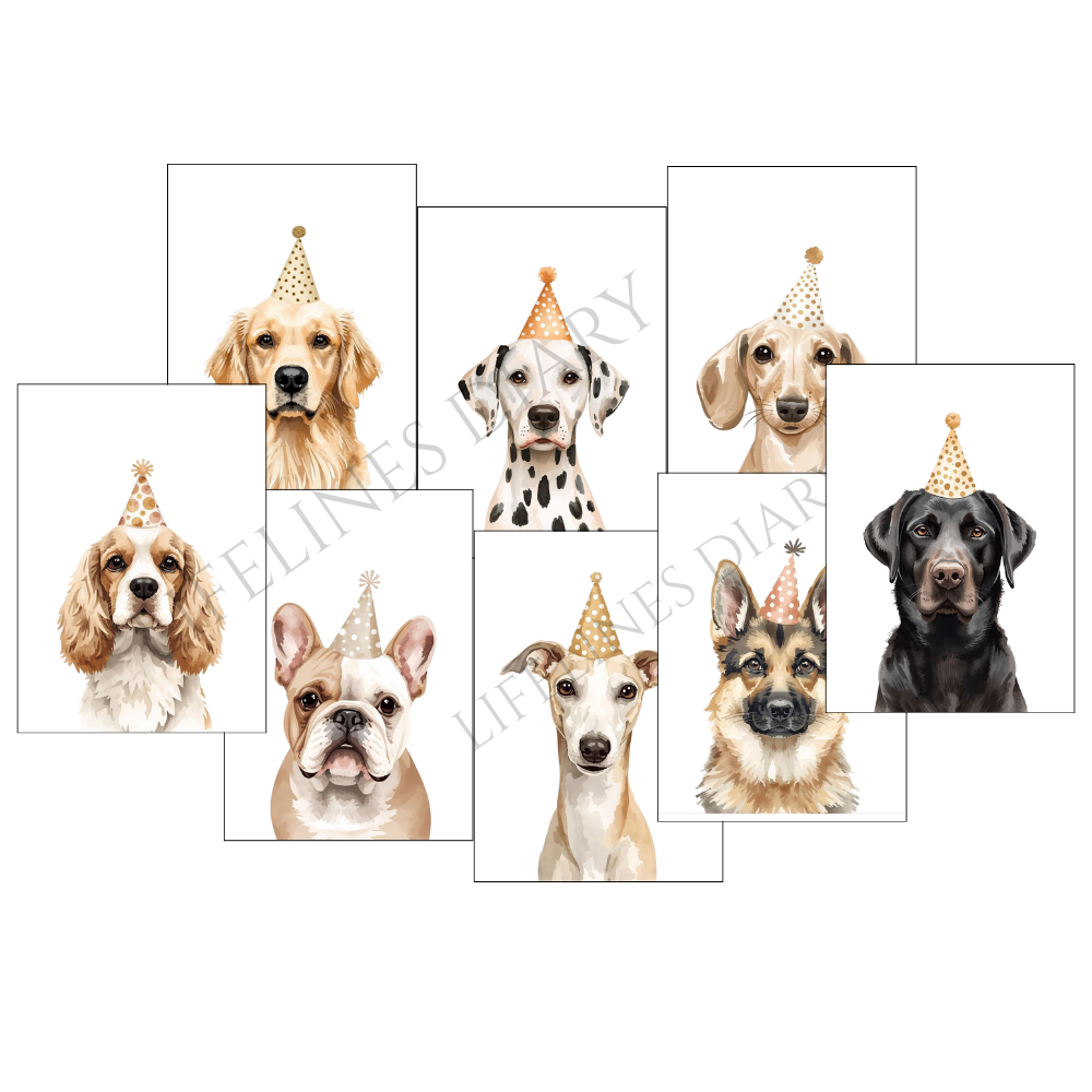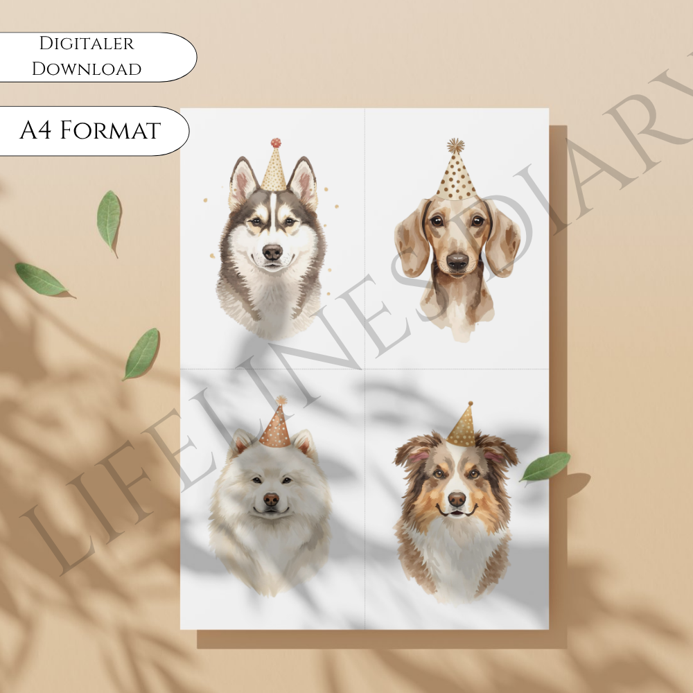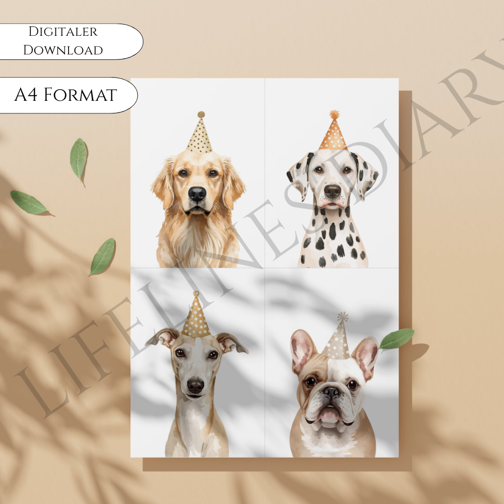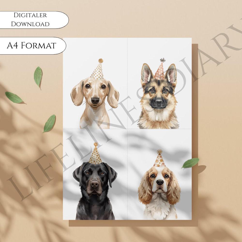 Für alle Hundeliebhaber, die Geburtstage mit Stil feiern! Dieses digitale Bundle enthält 12 Postkartenmotive mit verschiedenen Hunderassen im Partyhut – darunter Dalmatiner, Schäferhund, Windhund, Husky, Dackel, Labrador und mehr. Ob für den Hundebesitzer im Freundeskreis oder als charmante Geburtstagskarte mit Charakter – diese Karten treffen immer ins Schwarze.