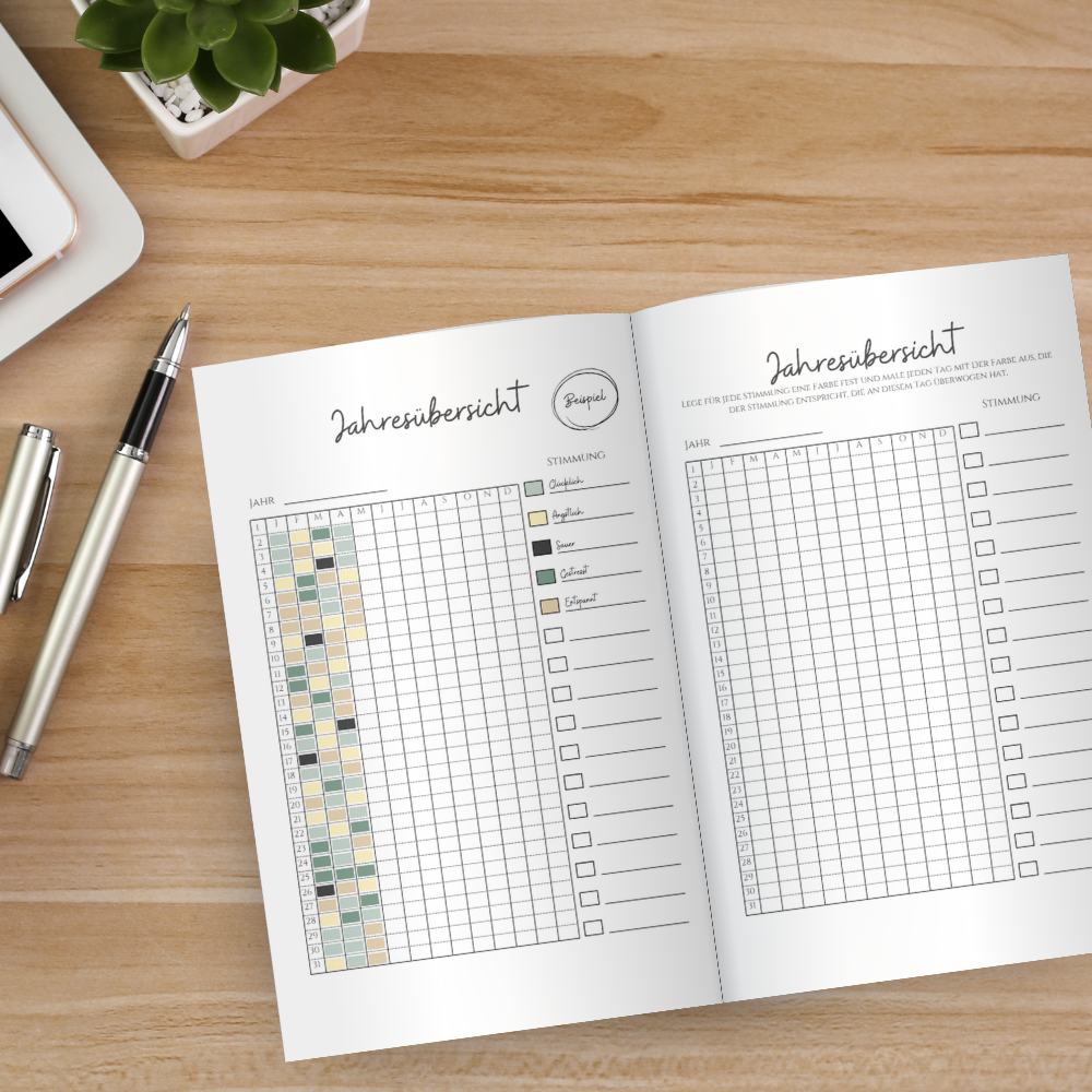 • Praktische Jahresübersicht um die eigenen Gefühle festzuhalten.